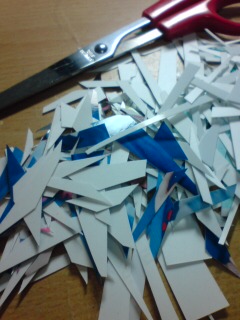 てことでハサミでじょきじょき。うちにはシュレッダーなんて便利なものありません。